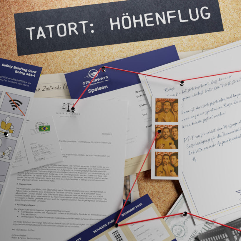 Wer könnte der Mörder sein und wer lässt sich durch ein Alibi ausschließen? Lüftet während euren Ermittlungen noch weitere pikante Geheimnisse der Fluggäste.